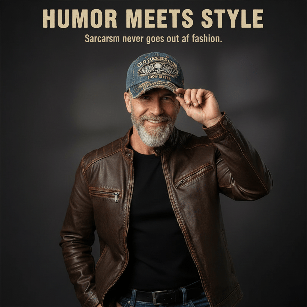 Show off your sarcasm and wear it with pride. This cap features the eye-catching words "Old Bastards Club – 100% Bitter – Lifetime Member" embroidered alongside a winged skull, perfectly embodying that cynical, worldly "been there, done that" feeling.