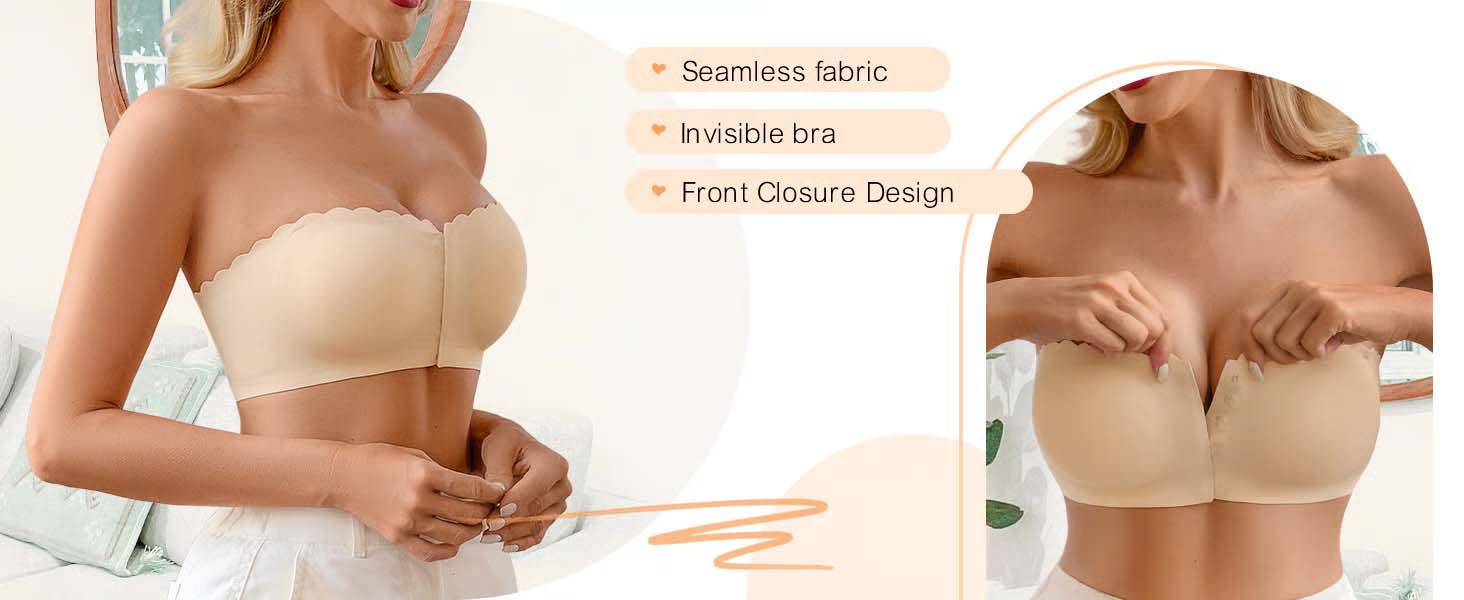 Saumaton olkaimeton bralettes on muotoilu edessä sulkeminen ja aaltoileva viimeistely yläosassa, mikä auttaa vähentämään selän rasitusta, koukku ja silmä sulkeminen edessä helppoa poistamista varten, olkaimeton muotoilu, joten voit näyttää olkapäät ja solisluu hyvin, erittäin seksikäs ja houkutteleva!