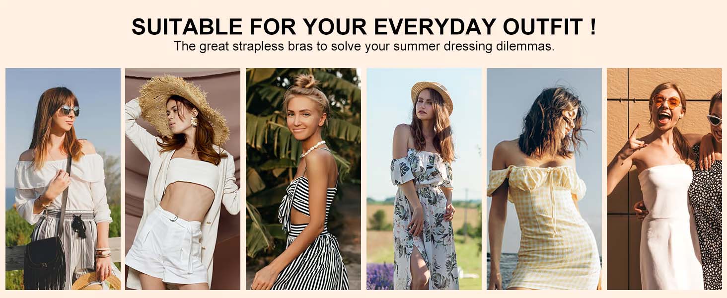 Naisten olkaimettomat bandeau-rintaliivit tuntuvat erittäin pehmeiltä ja sileiltä, hengittäviltä ja hikeä imeviltä, pitävät sinut viileänä ja mukavana koko päivän, erittäin kestävä ja joustava, erittäin kevyt kangas, jonka ansiosta naiset voivat käyttää niitä helposti ja ilman taakkaa.
