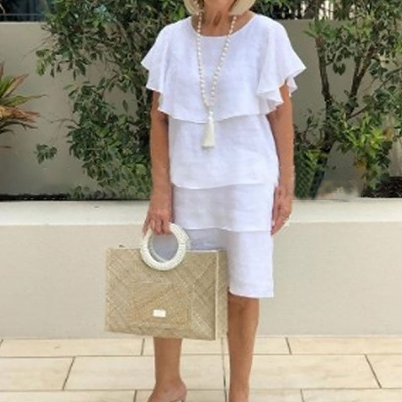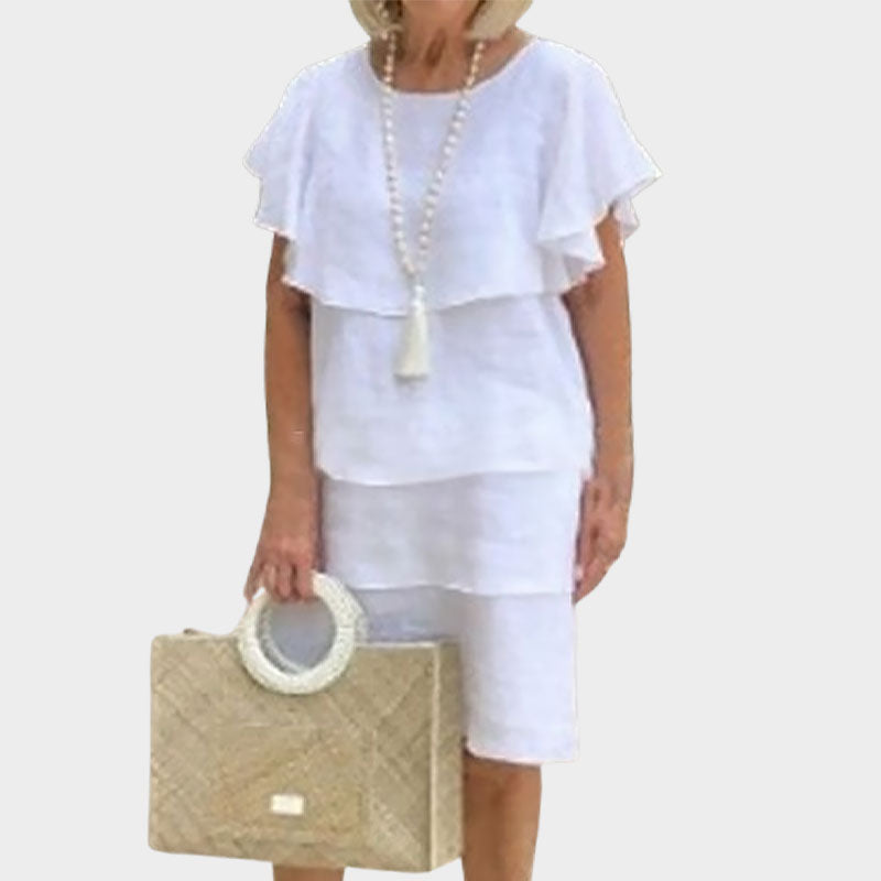 - 1 x Pyöreäkauluksinen, kellohihainen, monikerroksinen midimekko