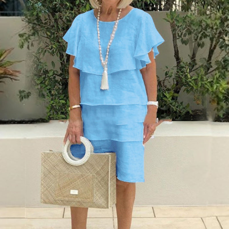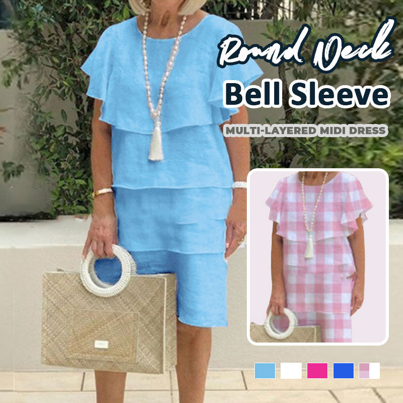 🌸Pyöreäkauluksinen, kellohihainen, monikerroksinen midimekko