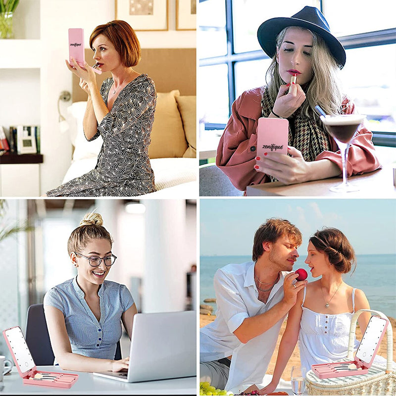 Luo täydellinen meikki-ilme monikäyttöisellä meikkisiveltimen säilytyslaatikolla, jossa on LED-meikkipeili.