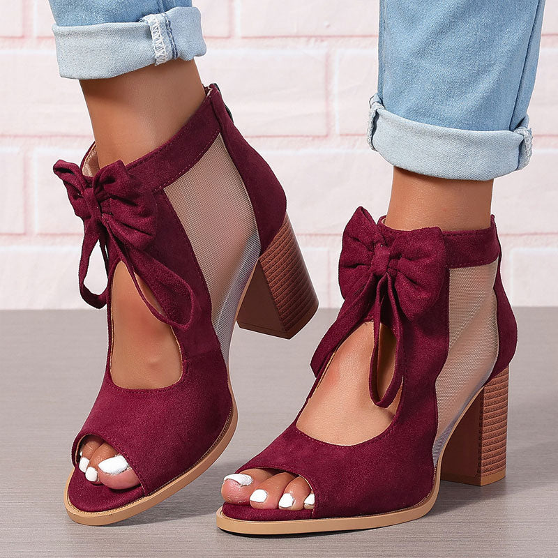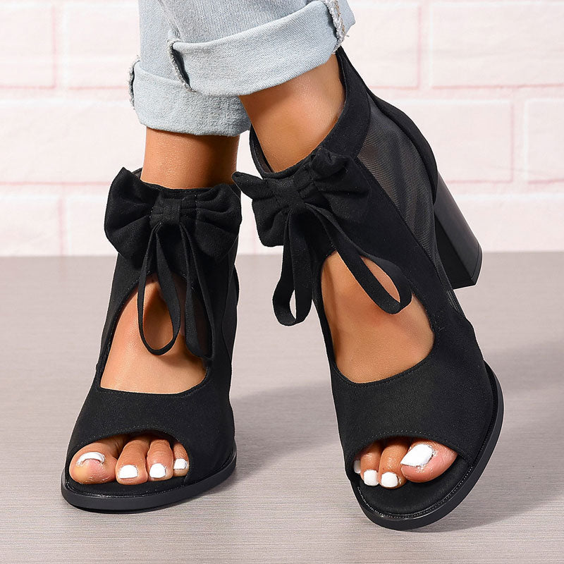 - 1 x  Naisten suuret rusettikorkoiset sandaalit, joissa paksu korko