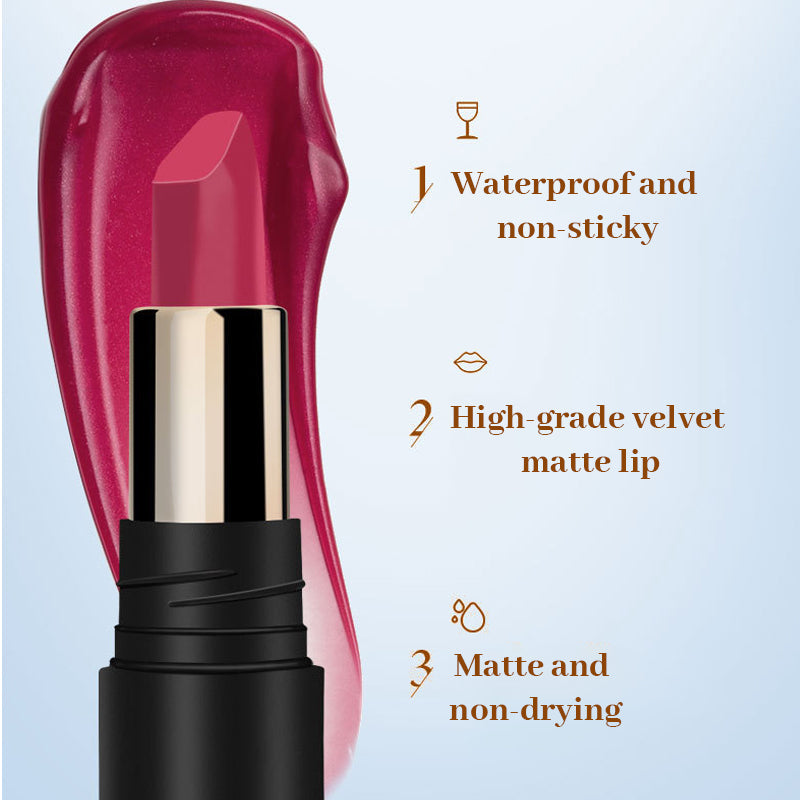 - Korkealaatuinen koostumus: Huulipunassamme yhdistyvät mattapintaisuus ja vedenkestävyys, mikä tekee siitä tahrattoman ja takaa värin pysymisen.