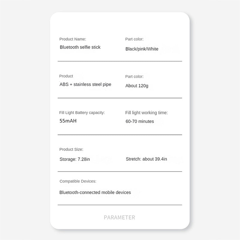 - 【Handheld Selfie Stick Stabiliser & irrotettava lisävalo】 Selfie Stick Stabiliser voi helposti tallentaa vakaita videoita vakaalla tasapainolla, mikä voi vähentää vartalosi ystävien tai perheenjäsenten tärinää kuvauksen aikana. Lisäksi selfiekepissä on myös fill-in light -toiminto. Voit kaunistaa ihonväriäsi ja tehdä itsestäsi kauniimman.