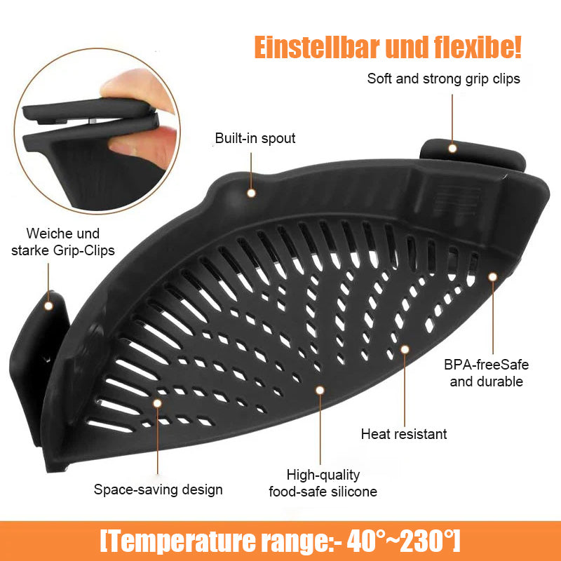 TÀmÀ silikoninen valutusastia lisÀÀ keittiön mukavuutta, ja se on suunniteltu huolellisesti ratkaisemaan astioiden valuttamisen ongelma helposti, mikÀ helpottaa ruoanlaittoa ja sÀÀstÀÀ työtÀ.