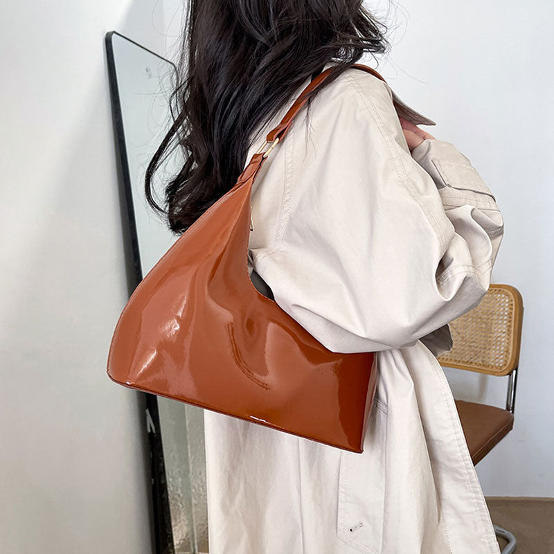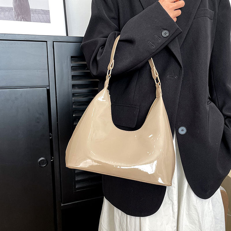Tämä kiiltävä neliönmuotoinen laukku on kuin muodin valonheitin, joka herättää huomiota joka askeleella. Sileä PU-materiaali heijastaa viehättävää loistokkuutta, jolloin olet keskipiste, jota ei voi jättää huomiotta väkijoukossa, ja voit helposti leikkiä muotia.