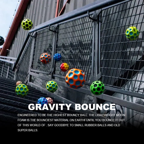 Gravity Bounce! Suunniteltu korkeimmalle pomppivaksi palloksi. Kevyt elastinen materiaali! Kunnes ponnahdat sen ulos tästä maailmasta.
