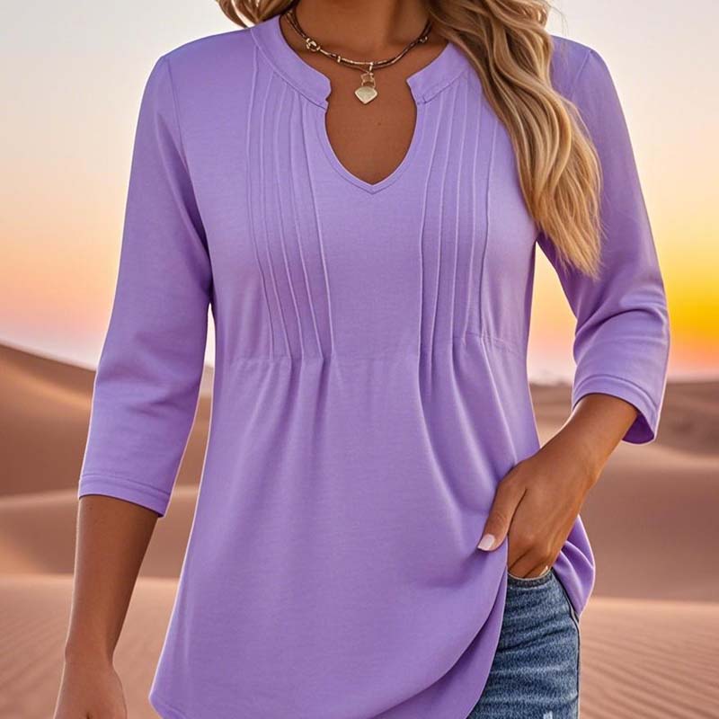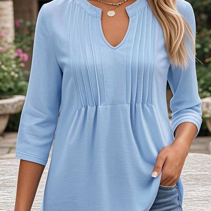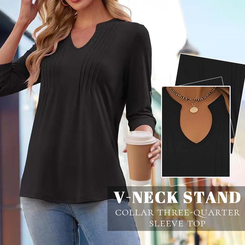 🌸V-Aukkoinen Pystykaulus Ja Kolmen Neljäsosan Hihat
